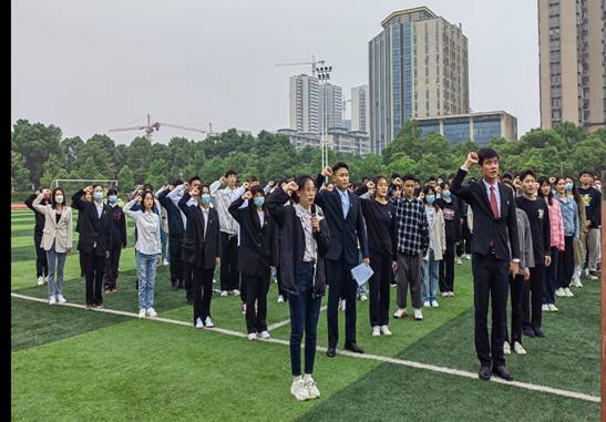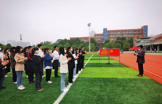 (通讯员 黄若筠)2022年5月19日下午,体育学院/大学体育教学部党委在学校东田径场进行了新党员入党宣誓仪式,共有21名新党员面对党旗庄严宣誓,53名师生党员重温入党誓词。