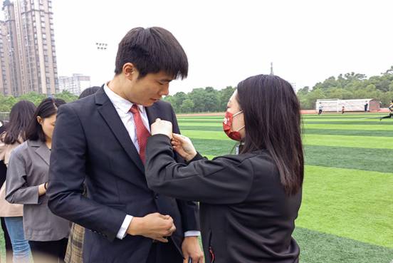 宣誓仪式上,新老党员们列队整齐,在领誓人邓婧同志的带领下面向党旗庄严宣誓,在激昂的宣誓声中,每位党员都接受了一次深刻的思想洗礼,更加深切地感受到了新时代党员的精神追求,进一步强化了对党忠诚、全心全意为人民服务的担当使命。学院党委书记郭羽同志、党委组织员、学生党支部书记王雄鹰同志、党委宣传委员龚莹莹同志、教工支部委员、学工办主任邓荣同志以及全院一百多名入党积极分子在现场见证了新党员加入党组织的神圣时刻,老党员亲手为新党员佩戴上神圣的党徽,新党员教师代表黄杜同志与学生代表周奇同志分别发表了宣誓讲话,表明了决心。郭羽书记为全体新党员送上祝福和嘱托,鼓励他们坚定理想信念,听党的话,跟党走,努力在新起点上实现新作为。(审核 郭羽)
