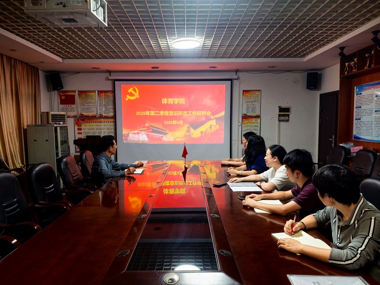 (通讯员 龚莹莹)2025年6月12日上午,体育学院党委在训练馆一楼会议室召开了2025年第二季度意识形态工作专题会议,学院党委书记郭羽主持,党位理论学习中心组全体成员、党支部书记和全体辅导员参加。
