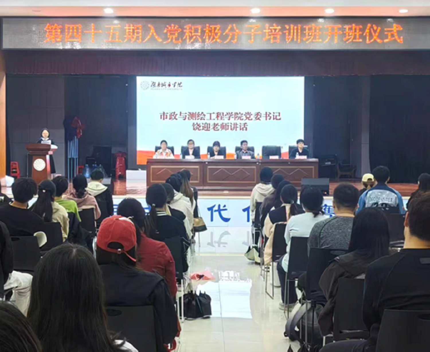 (通讯员 赵敏)为加强入党积极分子思想政治教育,筑牢理想信念根基,2025 年 9 月 25 日,由体育学院、市政与测绘工程学院、音乐与舞蹈学院分党校联合举办的第 45 期入党积极分子培训班开班仪式在学校大学生活动中心举行。体育学院党委书记郭羽、市政与测绘工程学院党委书记饶迎、音乐与舞蹈学院党委书记谢立新、音乐与舞蹈学院党委副书记曾遴琳、体育学院组织员杨晶、市政与测绘工程学院组织员赵丽、音乐与舞蹈学院组织员段立英及全体学员参加,仪式由赵丽主持。