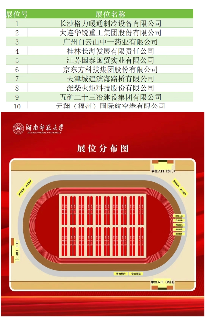 入场签到招聘会当天,请参会学生于上午8:30后从田径场东门“学生入口”(湖南师范大学教科院旁)入场。需携带如学生证、校园卡等证件供工作人员查看,并在入口处扫码签到。请排队入场,注意秩序。