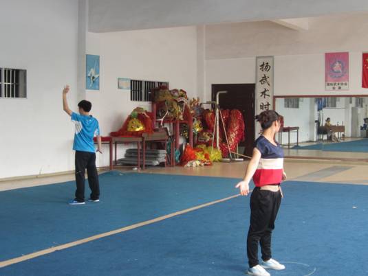 68日上午8点进行的是体育教育专业武术通级赛,下午230进行的是社会体育指导和管理专业的健身武术通级赛。两个专业看上去均为武术,其内涵不同,主要是针对两个专业的培养目标不同而设置的不同教学内容,因此考级内容也不同。担任此次武术通级赛裁判的有龚海燕、彭智、廖玉美3位老师。两个专业出身体素质项目相同外,体育教育专业更偏向长拳类套路,而社会体育管理与指导专业的内容更偏向大众健身的功法和太极拳等内容。