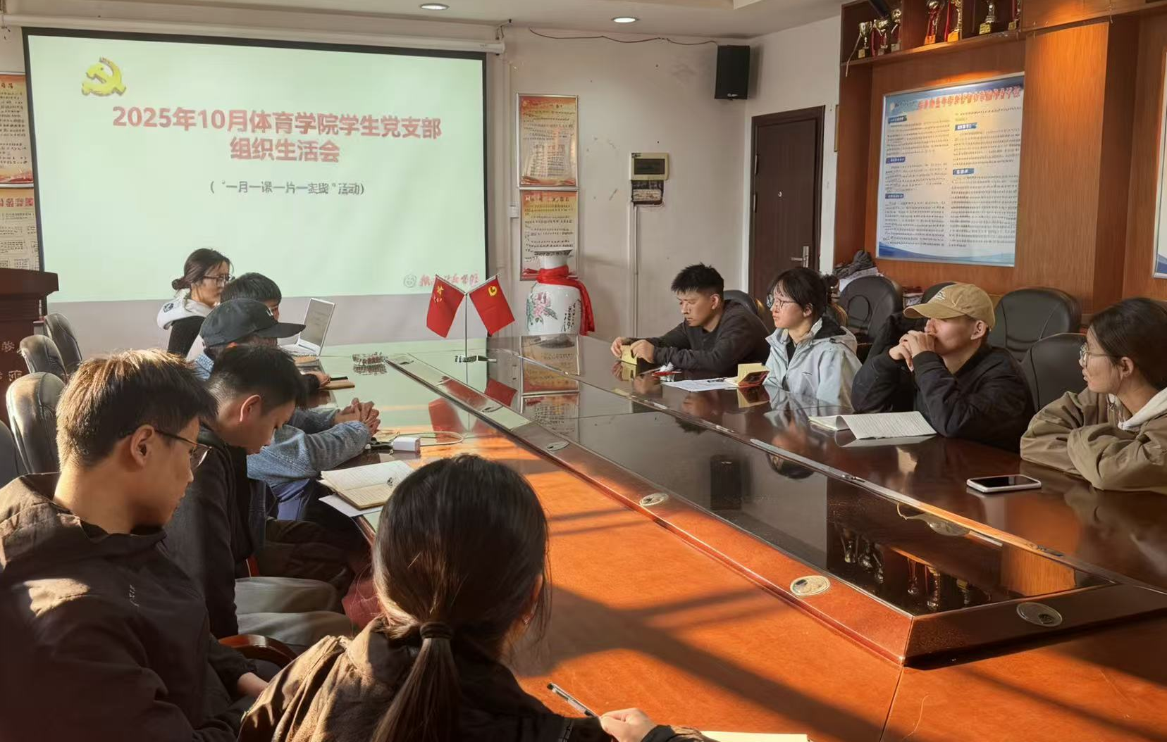 (通讯员:谢梓仪)为助力2025级新生快速适应大学学习节奏,以校训“品学兼修,知行统一”为指引,推动优良学风在学院落地生根。2025年10月23日中午,体育学院学生党支部在体育馆一楼会议室召开十月份主题党日活动。活动由党支部书记杨晶同志主持,采取“线下+线上”相结合的方式,全体学生党员参加。